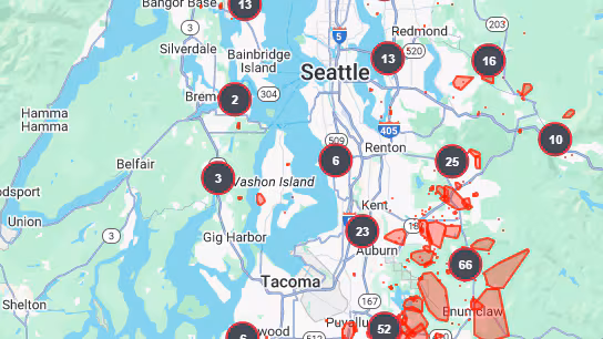 Seattle power outage map: windstorm knocks out power for more than 150,000 across Puget Sound