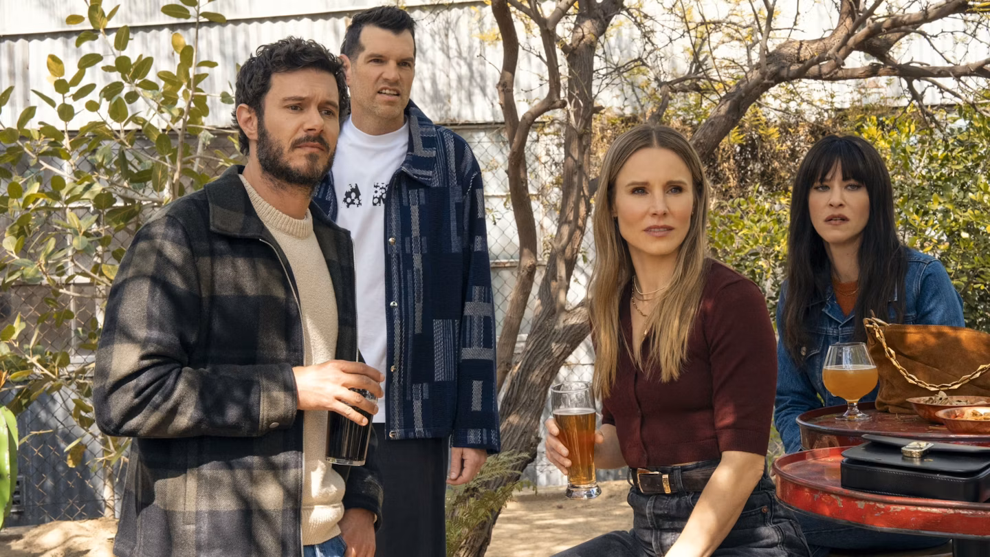 Kristen Bell as Joanne, the brash, agnostic podcaster still calibrating love, family, and restraint.
